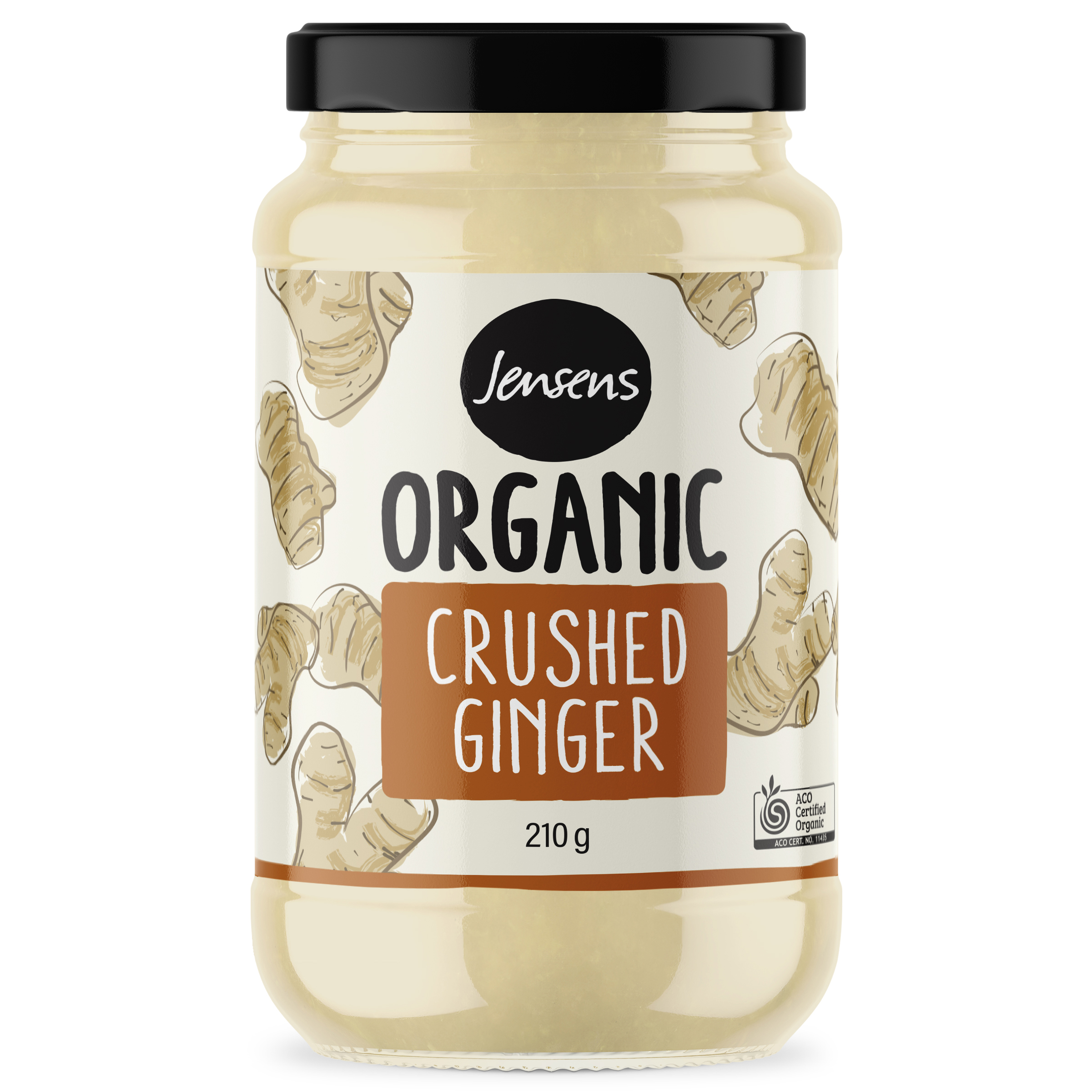 210gJensens Organic Crushed Ginger is the ultimate kitchen ingredient for when you want to add a bit of a twist to your dishes. It is made with real organic ginger to add instant flavour with a hit of freshness. Ginger adds a sweet and spicy taste with warming sensation. There is no need to grate or chop, it’s all ready to be spooned out into your next dish.